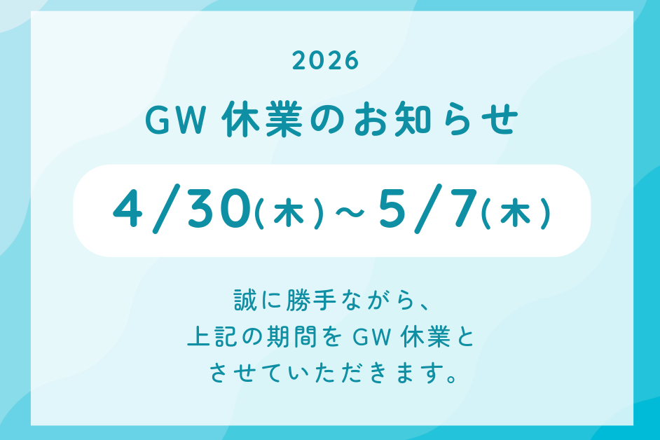 誠に勝手ながら、下記の期間をGW休業とさせていただきます。 休業期間:2026年4月30日(木)~2026年5月7日(木) 2026年5月8日(金)より通常営業いたします。 ご迷惑をおかけしま …